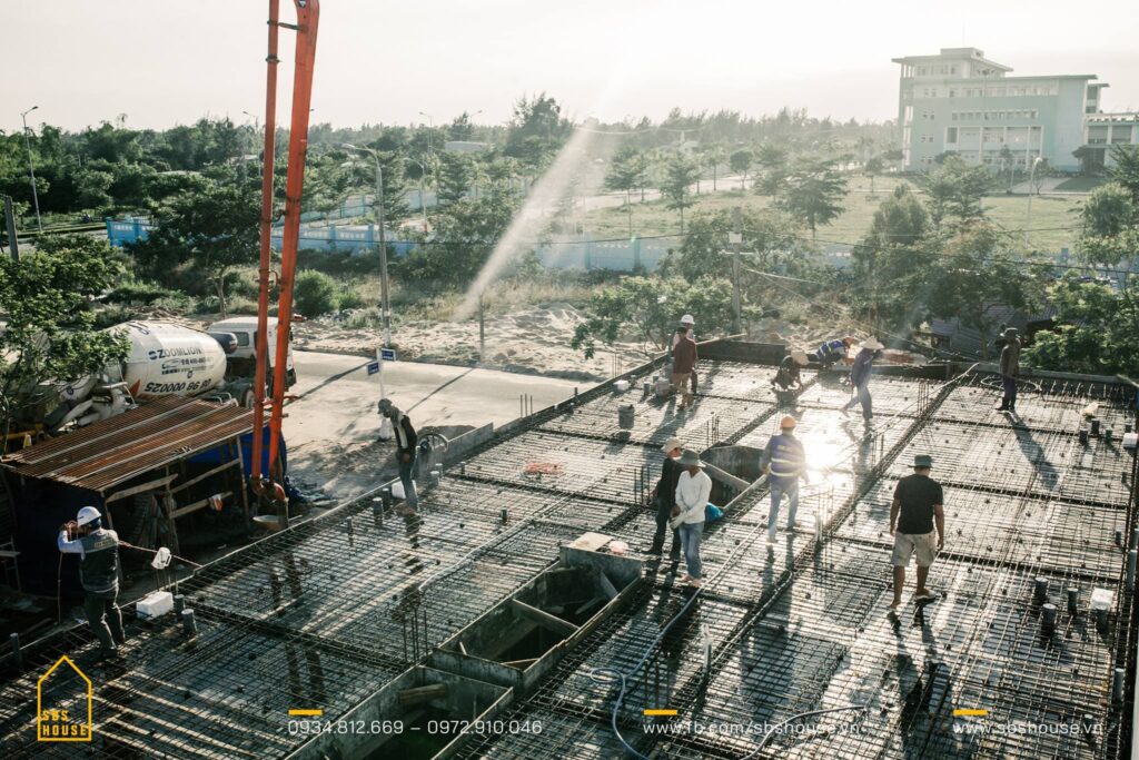 - Thi công sàn: Đổ bê tông sàn và cán nền cho tất cả các tầng, ban công và sân thượng.